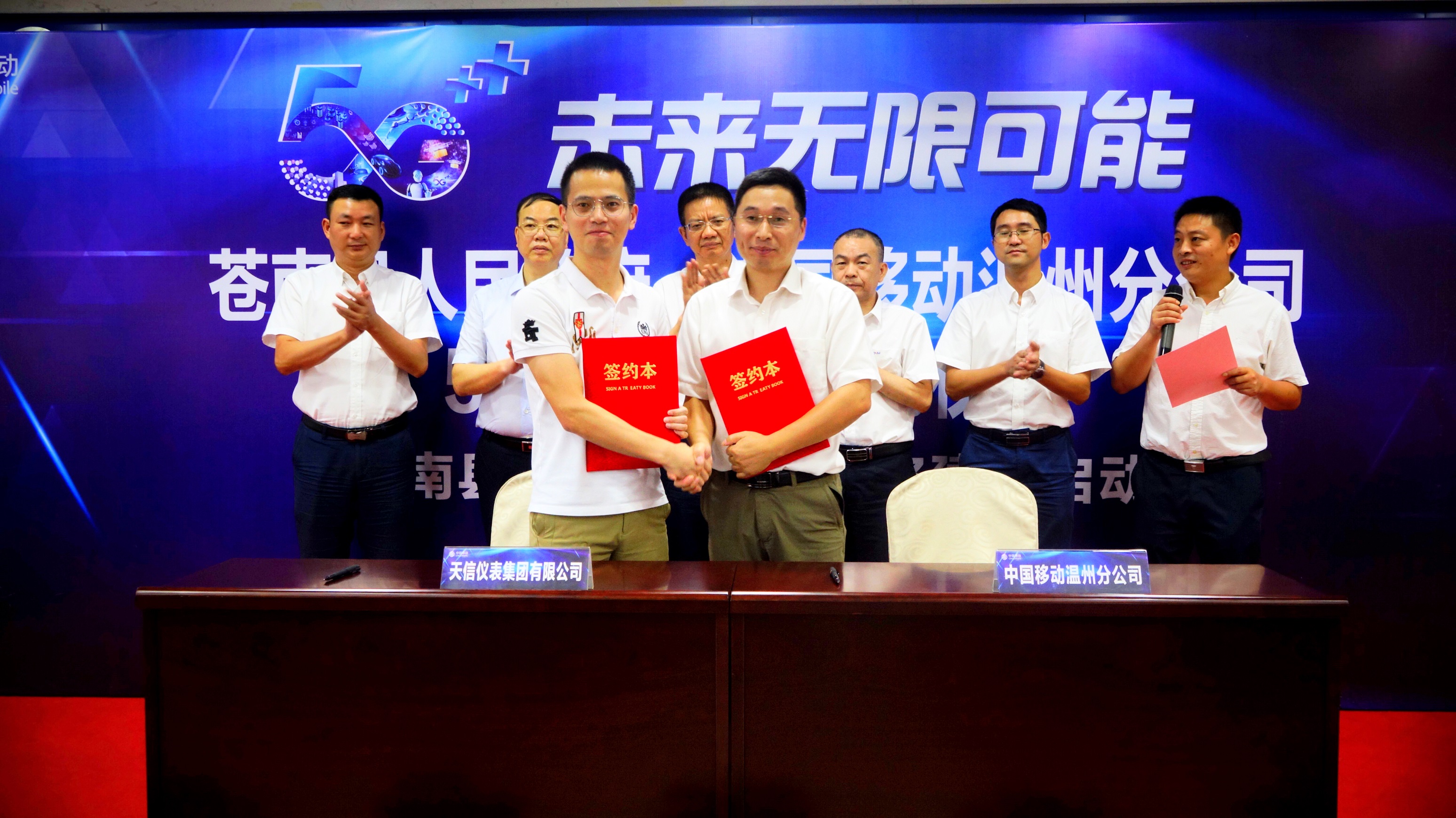 9月12日,在苍南移动大楼举行了苍南县人民政府与中国移动温州分公司5G战略协议签订仪式暨苍南县首批5G企业网络建设启动会。苍南县副县长李上清、中国移动温州分公司总经理助理叶朝阳、AG恒峰仪表集团有限公司副总裁李孝评等单位领导参加了签约仪式。